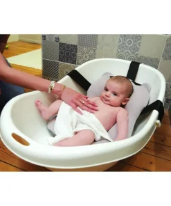 Premiers bains de bébé Parfaitement dimensionné pour s’adapter aux baignoires plastiques des nouveau-nés Confortable pour l’enfant Lui évite le contact direct avec la rigidité de la baignoire Matières adaptées Le fond en maille et le garnissage microbilles évacuent rapidement l’eau Système d’attache universel