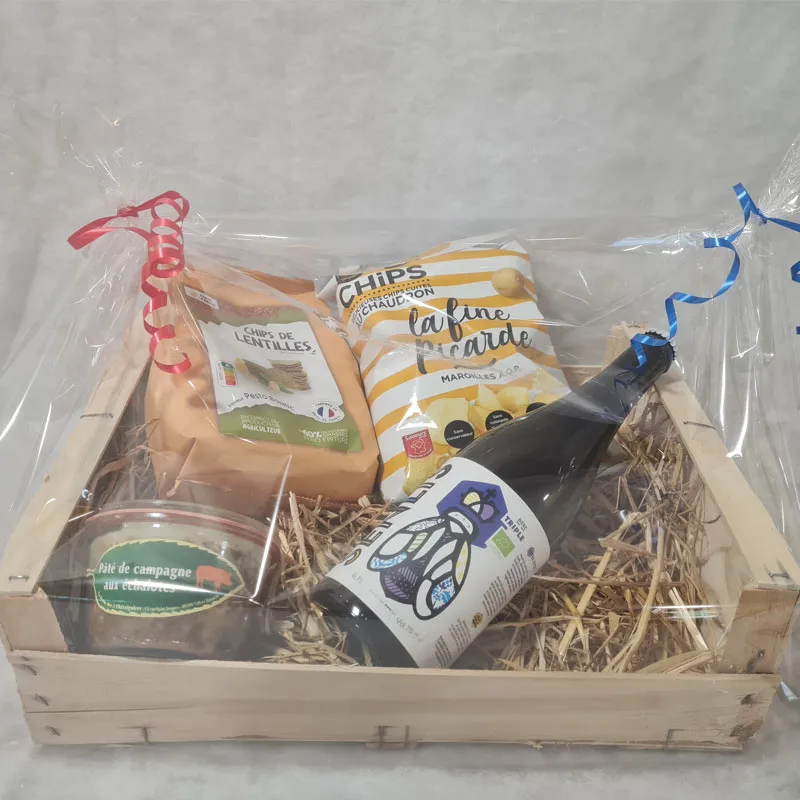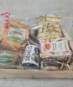 Coffret 20€ : 1 bière en 75cl, 1 paquet de chips (pdt), 1 paquet de chips (lentilles), 1 pâté de campagne (aromatisé)