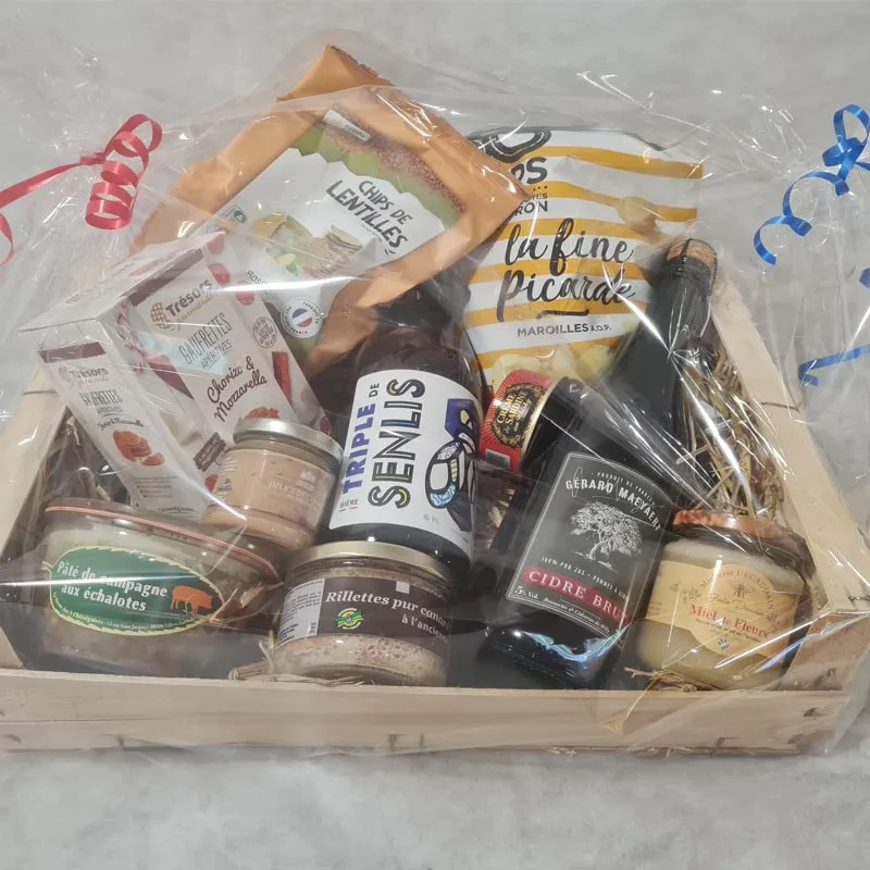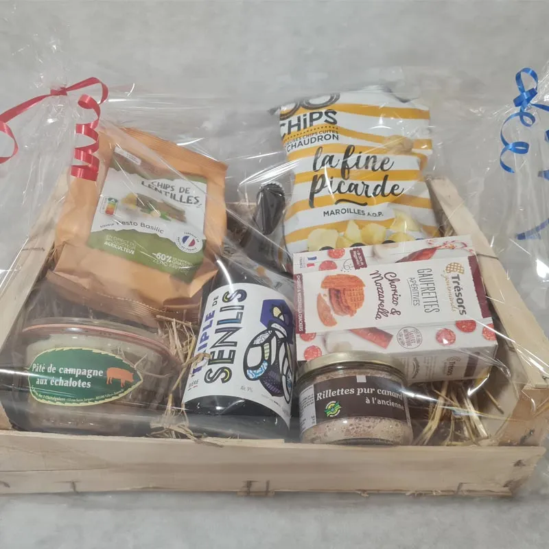 Coffret 30€ : Composition du 20€ + 1 paquet de gaufrettes salées, 1 pâté de canard
