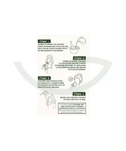 Feuille de Henné équitable – Feuille d’Indigo équitable- Fruit d’Amla – Feuille de Jujubier équitable – Feuille d’Eucalyptus – Feuille d’Aloe vera équitable* – Racine de Curcuma – Fleur de Camomille .