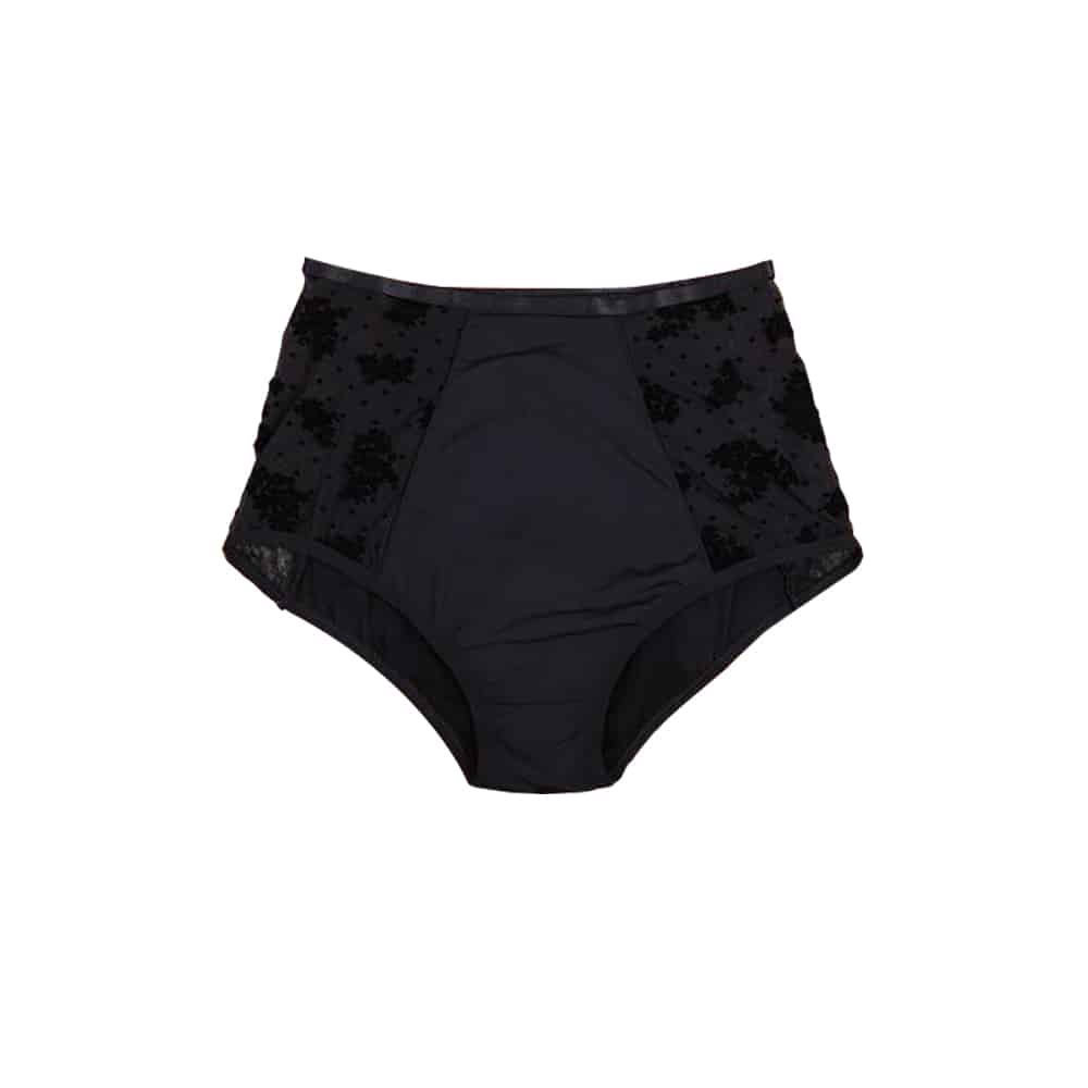 Achetez notre culotte menstruelle Ania taille haute, pour le flux abondant de la marque Hurya ! Elle peut vous protéger pendant 10 à 12h.