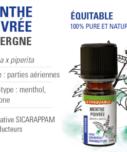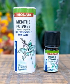 Notre huile essentielle de menthe poivrée 100% pure et naturelle est issue du commerce équitable. Elle est distillée sur place par une méthode d’extraction douce. Une distillation à la vapeur d’eau sous basse pression avec une durée complète extrait en effet la totalité des molécules aromatiques volatiles.