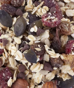 Composé de flocons de blé complet, seigle, avoine et orge, ce muesli est enrichi avec des raisins secs, du confit d’orange, des pommes déshydratées et des noisettes grillées. Il peut se consommer avec du lait, dans un fromage blanc ou dans un yaourt.