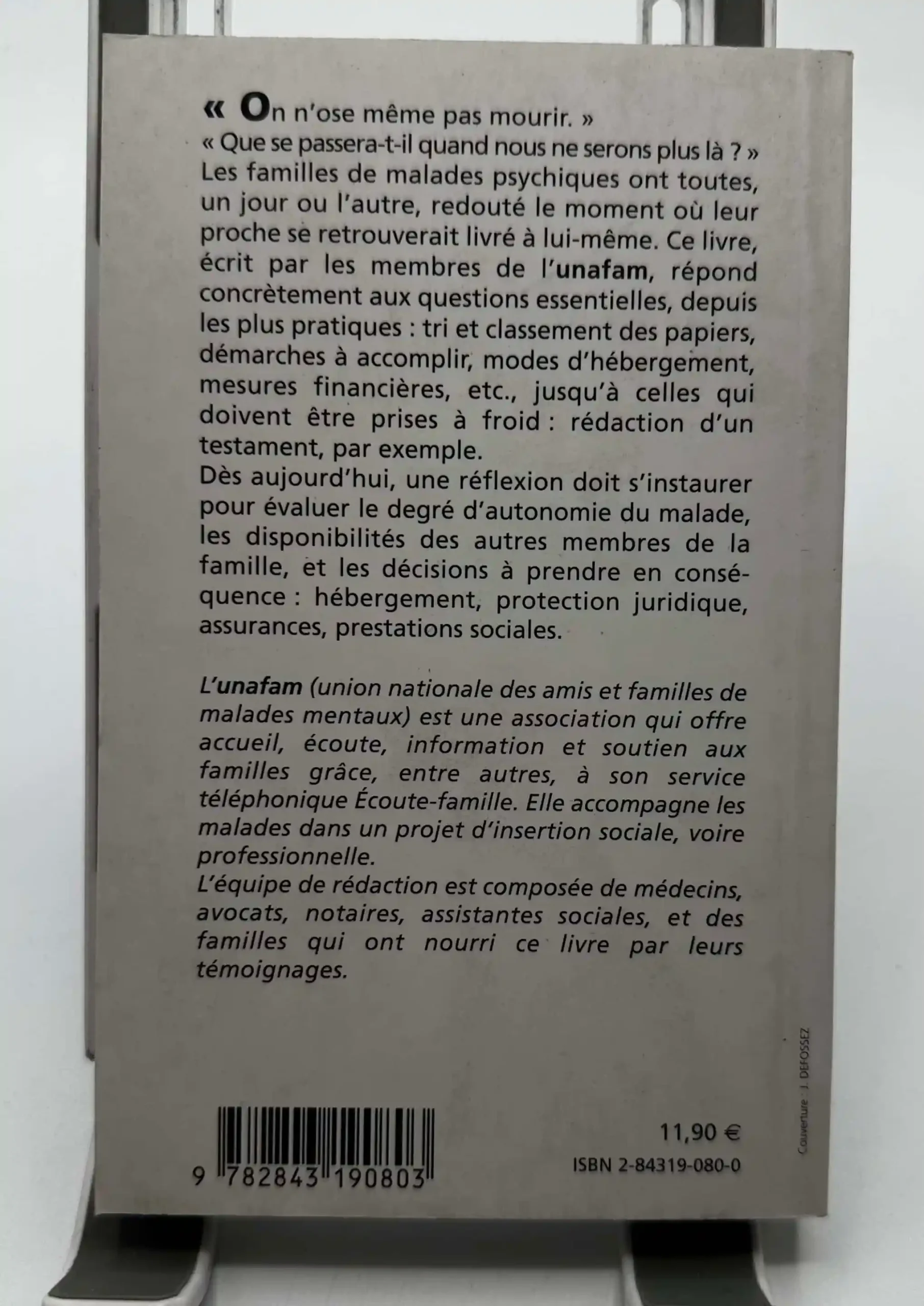 Les familles de malades psychiques ont toutes, un jour ou l’autre, redouté le moment où leur proche se retrouverait livré à lui-même. Ce livre, écrit par les membres de l’unafam, répond concrètement aux questions essentielles, depuis les plus pratiques : tri et classement des papiers, démarches à accomplir, modes d’hébergement, mesures financières, etc., jusqu’à celles qui doivent être prises à froid: rédaction d’un testament, par exemple.
