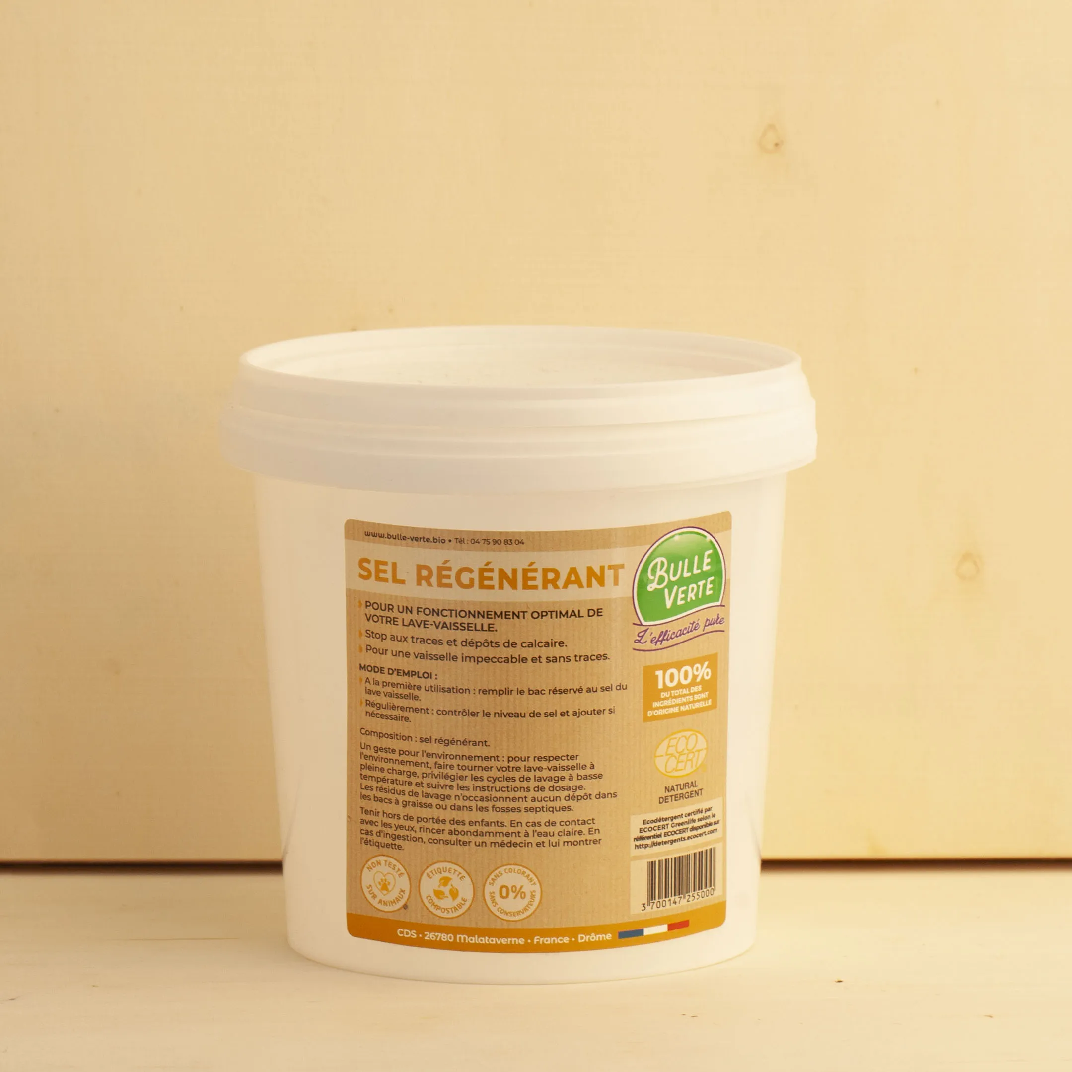 Le sel régénérant, associé au liquide de rinçage, adoucit l’eau utilisée par le lave-vaisselle. Couplé au liquide de rinçage, le sel régénérant empêche le dépôt calcaire sur la vaisselle et par conséquent évite les traces blanches.