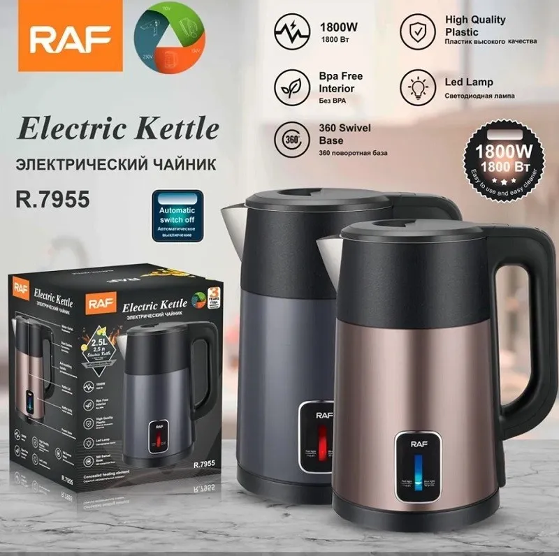 La bouilloire électrique RAF 7955 est un appareil pratique et sûr, idéal pour préparer rapidement et facilement de l’eau chaude pour vos boissons et vos repas instantanés. Son design élégant en acier inoxydable, sa capacité de 2,5 litres et ses fonctionnalités pratiques en font un compagnon idéal pour votre cuisine. Profitez de l’efficacité et de la simplicité d’utilisation de la bouilloire électrique RAF 7955 au quotidien.